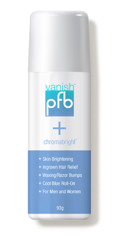 PFB Vanish is a unique, cosmetically elegant roll-on gel formulated for ingrown hairs, razor burn and bumps resulting from shaving, waxing, tweezing, electrolysis and laser hair removal. PFB Vanish contains exfoliating and moisturizing ingredients to maximize the results. Say goodbye to ingrown hairs!